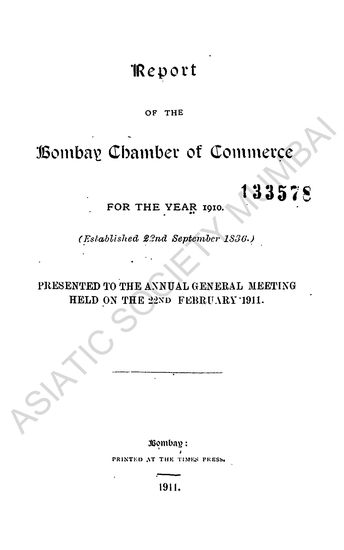 Report of the Bombay Chamber of Commerce, for the year 1910