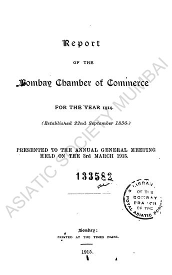 Report of the Bombay Chamber of Commerce, for the year 1914