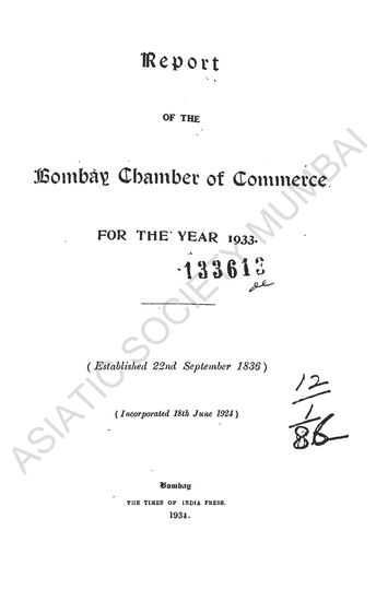 Report of the Bombay Chamber of Commerce, for the year 1933