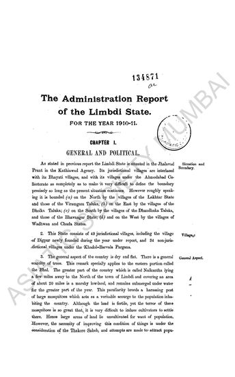 The Administration Report of the Limbdi State, for the year 1910-11 to 1914-15 (bounded together)