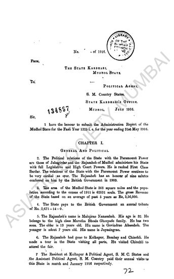 Administration Report of the Mudhol state, for the year 1915-16 to 1920-21 (bounded together)