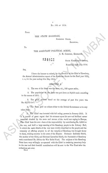 Administration Report of the Porbandar State, for the year 1909-10 and 1914-15 (bounded in one)