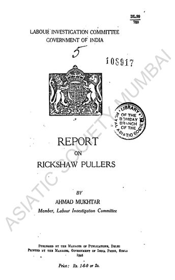 Report on Rickshaw Pullers, 1946 (bounded together)