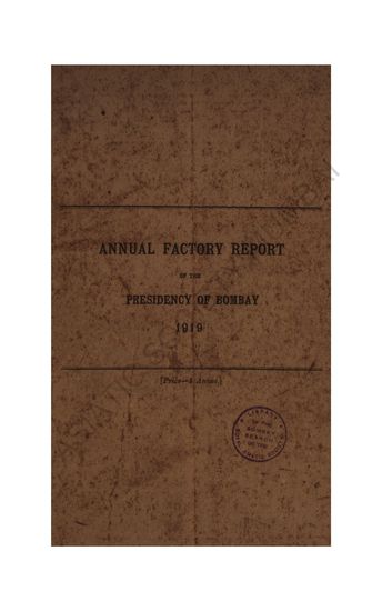Annual Factory Report of the Presidency of Bombay for the Years 1919