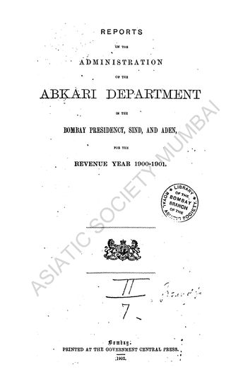 Report on the Administration of the Abkari Department 1900-1901