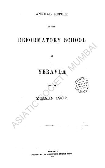 Annual Report of the Reformatory School at Yerrowda for the Years 1907