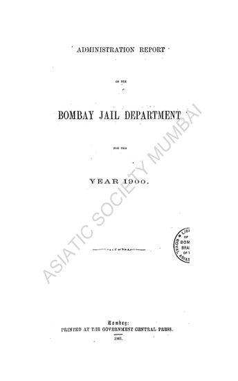 Administration Report on the Bombay Prison Department for the Year 1900
