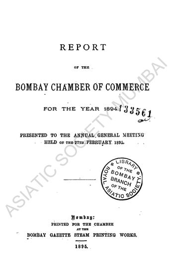 Bombay (India, British). Bombay Chamber of Commerce