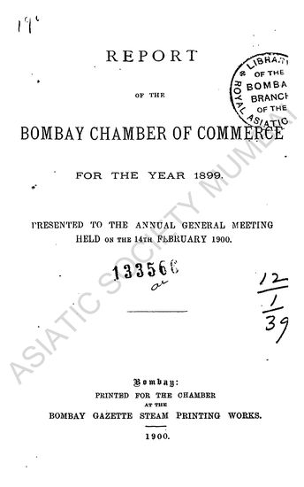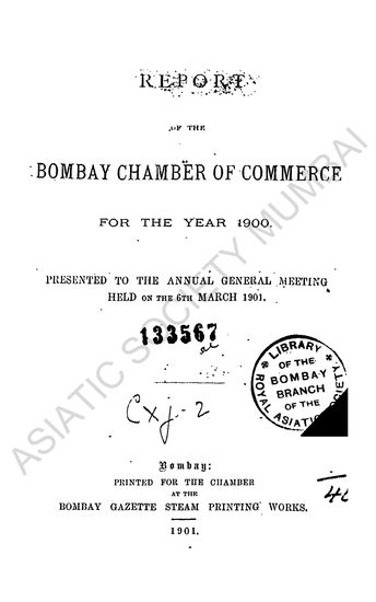 Report of the Bombay Chamber of Commerce, for the year 1900