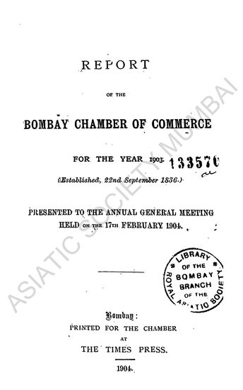 Report of the Bombay Chamber of Commerce, for the year 1903