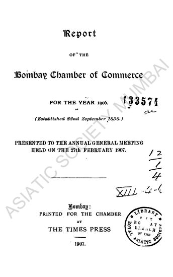 Report of the Bombay Chamber of Commerce, for the year 1906