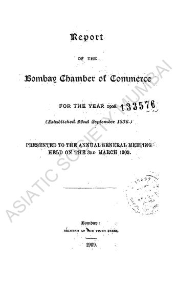Report of the Bombay Chamber of Commerce, for the year 1908