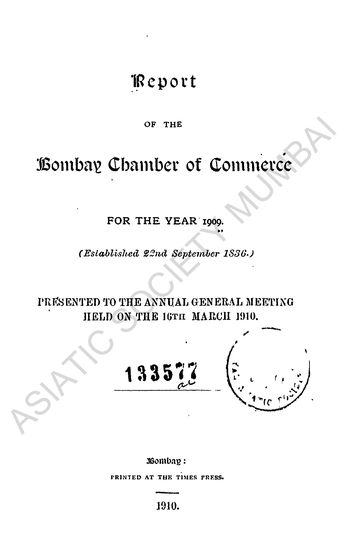 Report of the Bombay Chamber of Commerce, for the year 1909