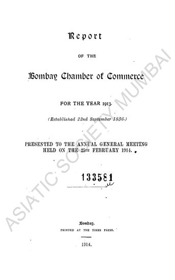 Report on the Bombay Chamber of Commerce, for the year 1913