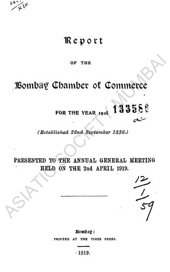 Report of the Bombay Chamber of Commerce, for the year 1918