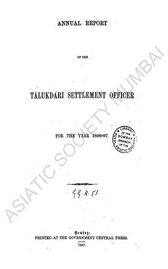 Annual Report of the Talukdari Settlement Officer, for the year 1896-97