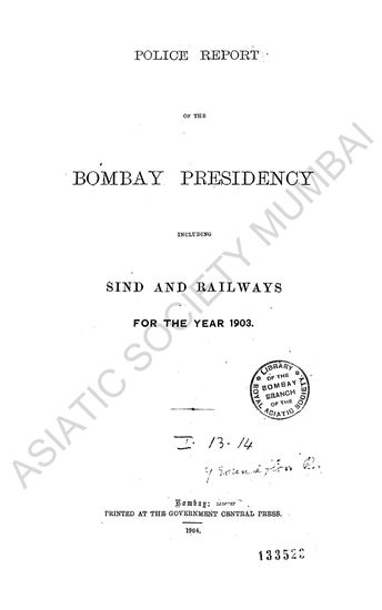 Police Report of the Bombay Presidency, including Sind and Railways, for the year 1903
