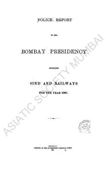 Police Report of the Bombay Presidency, including Sind and Railways, for the year 1907