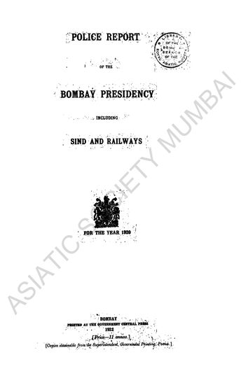 Police Report of the Bombay Presidency, including Sind ...