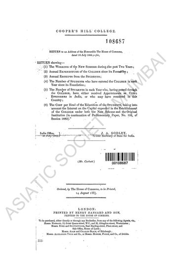 Annual Expenditure of the Cooper's Hill College, since ...