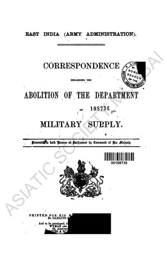 Great Britain. Houses of Parliament. East India (Army Administration)