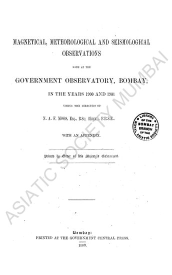 Magnetic, Meteorological and Seismographic Observations made at the Government Observatory, Bombay, in the years 1900 and 1901