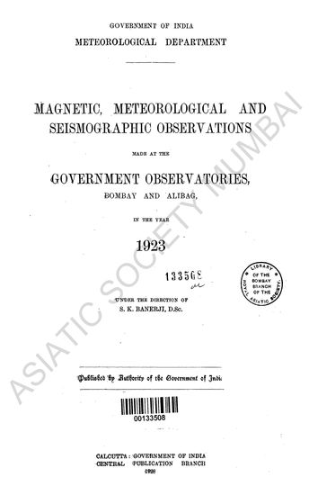 Magnetic, Meteorological and Seismographic Observations made at the Government Observatories, Bombay and Alibag in the year 1923