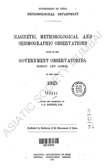 Magnetic, Meteorological and Seismographic Observations made at the Government Observatories, Bombay and Alibag in the year 1925