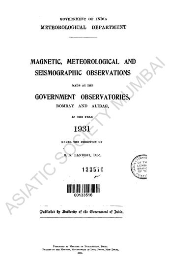 Magnetic, Meteorological and Seismographic Observations made at the Government Observatories, Bombay and Alibag in the year 1931