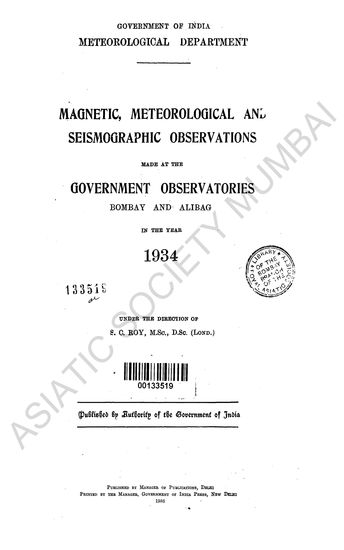 Magnetic, Meteorological and Seismographic Observations made at the Government Observatories, Bombay and Alibag in the year 1934