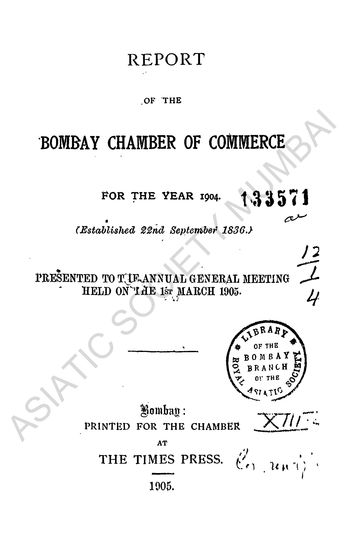 Report of the Bombay Chamber of Commerce, for the year 1904