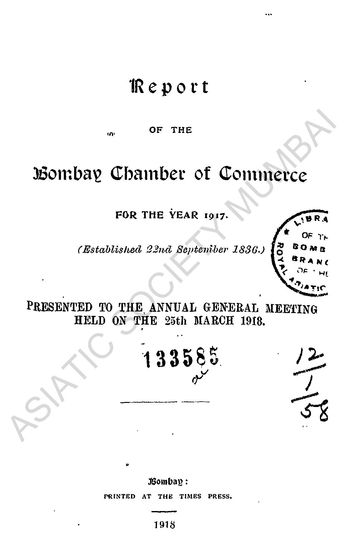 Report of the Bombay Chamber of Commerce, for the year 1917