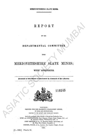 Report of the Departmental Committee upon Merionethshire Slate Mines; with Appendices