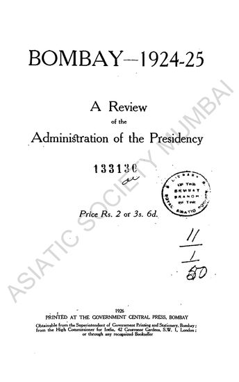 Bombay 1924-25: A Review of the Administration of the Presidency