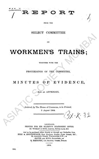 Report from the Select Committee on Workmen's Trains; together with the Proceedings of the Committee, Minutes of Evidence and Appendix