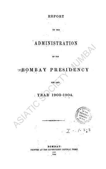 Report on the Administration of the Bombay Presidency for the Years 1903-04