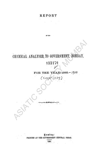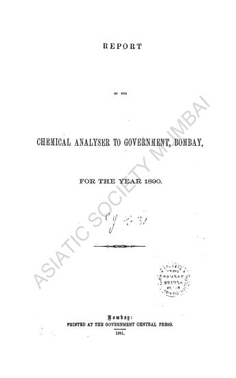 Report of the Chemical Analyser to Government, Bombay, for the Year 1890
