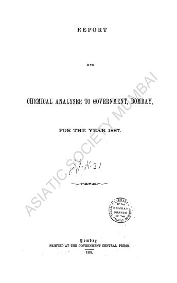 Report of the Chemical Analyser to Government, Bombay, for the Year 1887