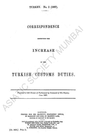 Correspondence respecting the Increase of the Turkish Customs Duties