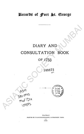 Records of Fort St. George- Diary and Consultation Book of 1733