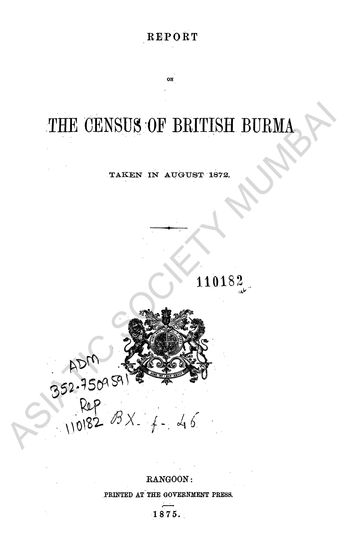 Report on the Census of British Burma taken in August 1872