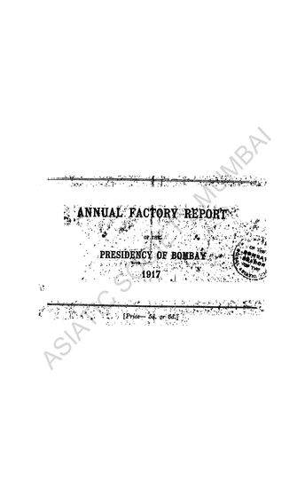 Annual Factory Report of the Presidency of Bombay for the Years 1917