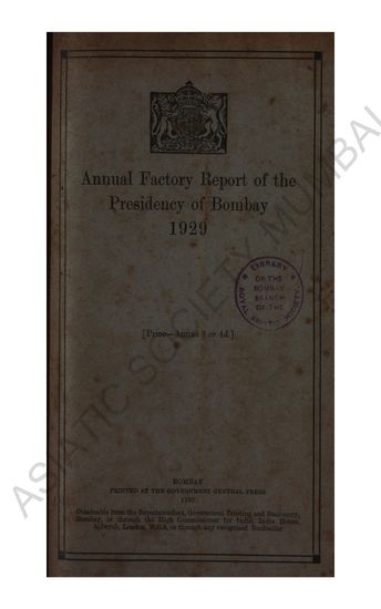 Annual Factory Report of the Presidency of Bombay for the Years 1929