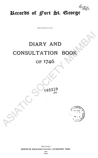 Records of Fort St. George- Diary and Consultation Book of 1746