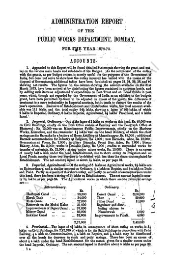 Administration Report of the Public Works Department, Bombay Presidency for the Year 1872-1873