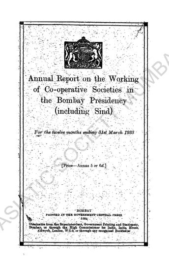 Annual Report on the Working of Co-operative Societiesin the Bombay Presidency (including Sind) for the Twelve month ending March 31,1933