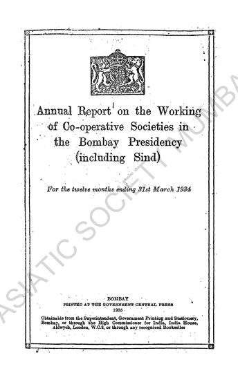 Annual Report on the Working of Co-operative Societiesin the Bombay Presidency (including Sind) for the Twelve month ending March 31,1934