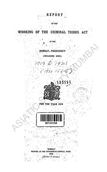 Report on the Working of the Criminal Tribes Act in the Bombay Presidency (Including Sind) for the Year 1919