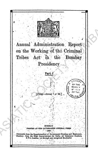Report on the Working of the Criminal Tribes Act in the Bombay Presidency Part-I,For the Year Ending March 31St,1928
