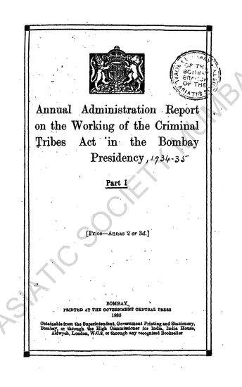 Report on the Working of the Criminal Tribes Act in the Bombay Presidency Part-I,For the Year Ending March 31St,1935